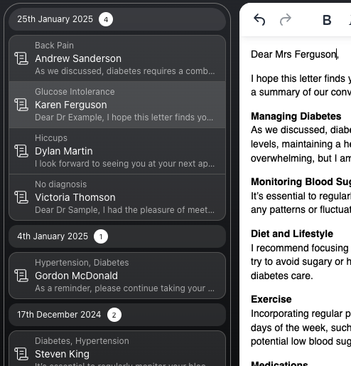 Teach the AI like you would teach a resident. The AI learns from you and adapts to your voice. The AI will also remember the instructions for all future letters.